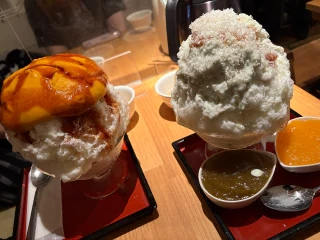 朝イチで友達と大好きな某かき氷屋さん来ました💓私が頼んだのは写真のかき氷なのですが、これ、ブルーチーズ味なんです❣️ブルーチーズが元から好きなのですが、まさかかき氷にも合うなんて…!!追い蜜の柿といちじくもちゃっかり追加←友達はかぼちゃ頼んでました❤️