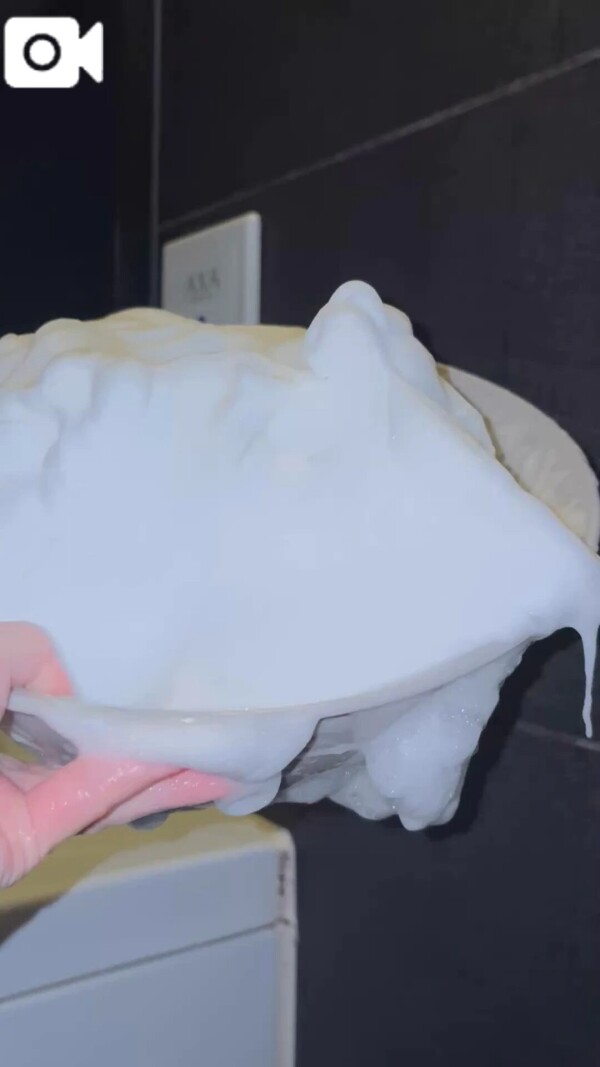 この泡、洗面器をひっくり返しても落ちないですよね?