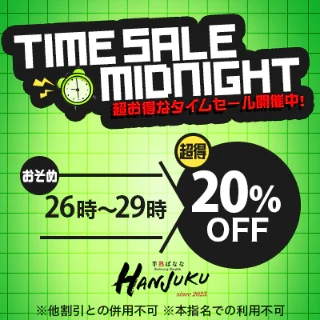こんにちわ!深夜のタイムセール割引開催中です26時~ラストが総額から20%引きこれってかなりお得です!会いに来てください