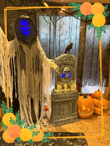 こちらのホテルの入り口は、「ハロウィン」の装飾が素晴らしかったので、思わず写真を撮りました。