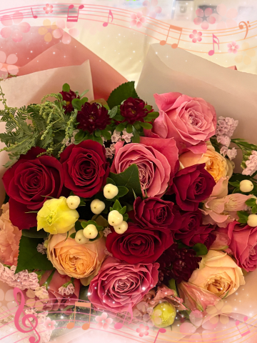 お部屋へ伺うとお優しい笑顔のご指名様のお姿がありました。そっと置かれた花束も、一緒に笑顔に見えます。笑顔いっぱい優しく出迎えて下さりました。