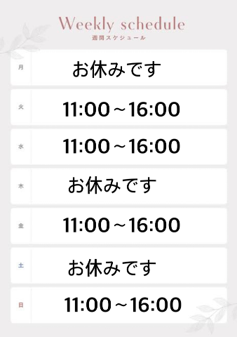 本日出勤 11:00〜16:00