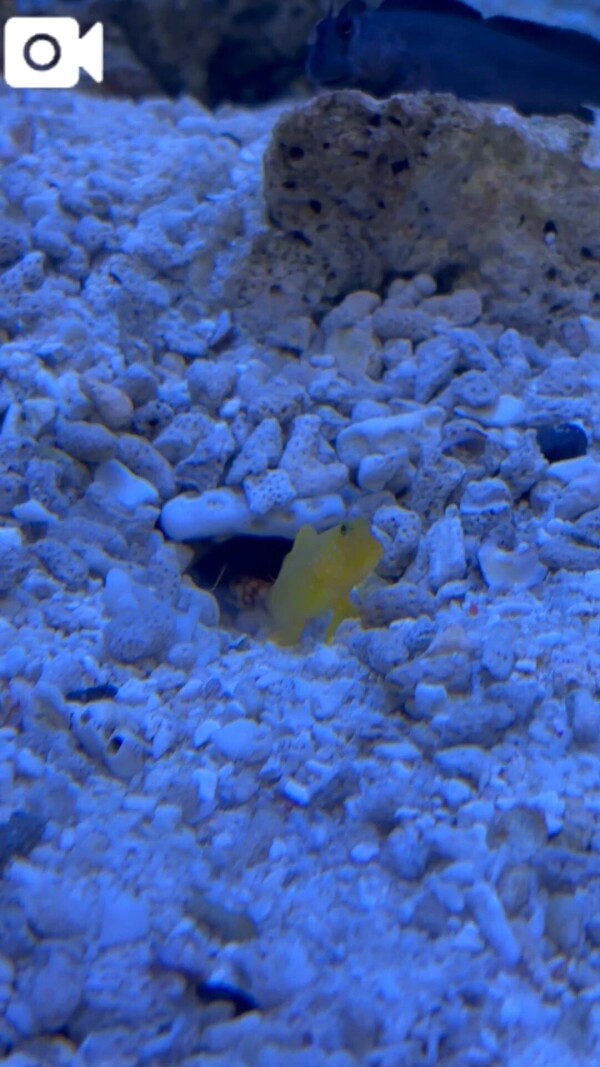 水族館でハゼとヤドカリ?ザリガニが一緒にいたんですけど右上の黒いハゼが動くと一瞬で巣に入るんですよ!!!めっちゃ早くないですか⁉️⁉️見てるこっちがびっくりしました😂