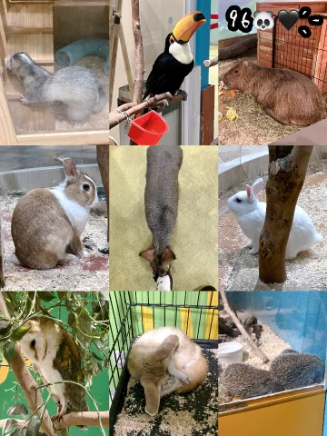 こんなに至近距離で触れ合えてにこにこでした🐰🐧🐹🐵🐍🦔🐢