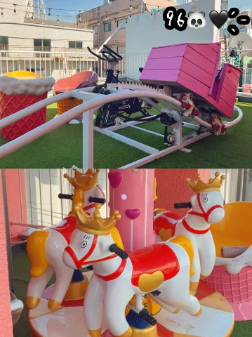 まずは屋上庭園でジェットコースターとメリーゴーランドを堪能🎠🎡🎢