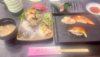 退勤しました!!!お腹空きすぎて1人ですしざんまいきちゃった🍣♡今日は贅沢にサザエのお刺身も🎶お兄さまはなんのネタが好き???まいはね、まぐろ赤身とつぶ貝💕︎秋葉原コスプレ学園 🎀 まい