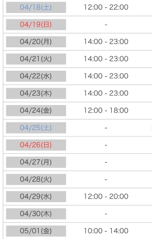 シフトが追加になるかもしれないですが、現状、確定している日にちは、こちらになります!