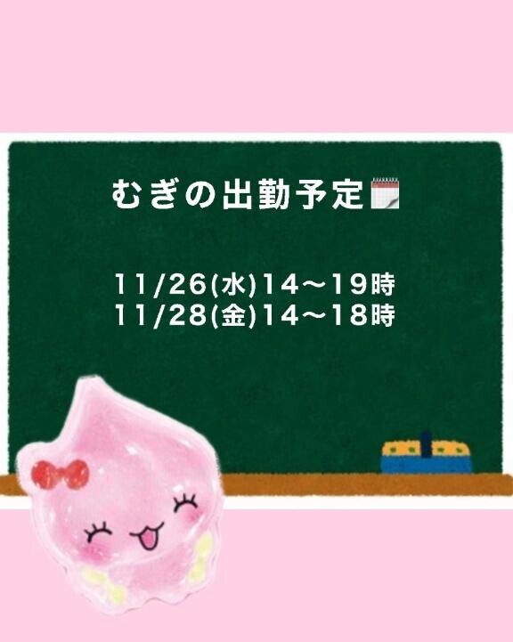 やっほ!むぎです!遅くなりましたが、今週の出勤予定です!最近も相変わらずお休み多くてごめんね??今週は両日とも出勤出来るよう頑張る??会いに来てね~~??