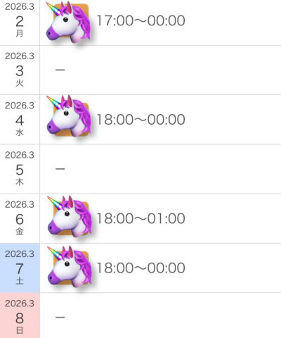 来週の出勤日が決定したのでお知らせ??