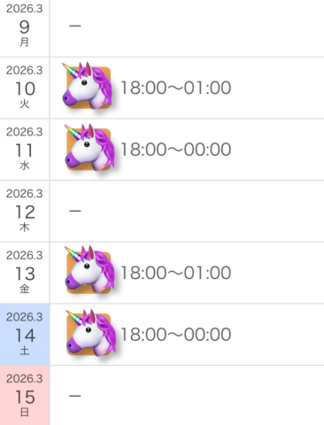 今週の出勤日を再掲します??