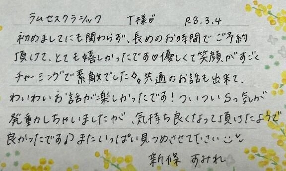 当店初めてのご利用ですみれを選んでくださり、事前のご予約を頂けてとても嬉しかったです🫶🏻