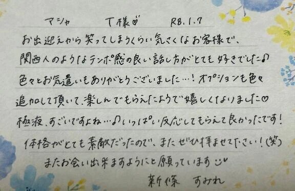 色々お気遣い頂き、いつも女の子に平等に優しく接しているんだなというのを節々で感じました( ◜ω◝ )✧︎