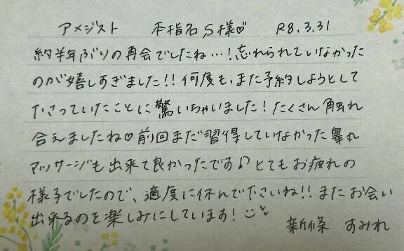 すみれが入店して1週間も経っていない時にお会いしたS様と約半年ぶりの再会が出来て、とても嬉しかったです💗