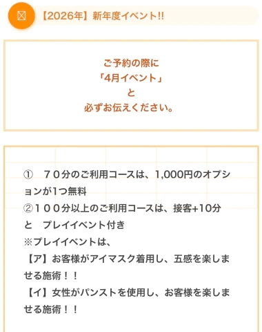 ②100分以上のコースのご利用で、接客+10分とアイテムを使った新体験のプレイイベントが楽しめます🤫♡お客様がアイマスク着用or